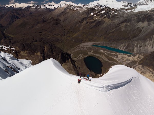 The “Nevado” Chopicalqui it’s one of the “six thousand peaks” more beautiful and popular in the “White Range” of Peru, because his normal route it’s technically easy. This Peak is part of the “Huascaran (21981 ft.) range” (highest mountain in Peru), and it’s placed between LLanganuco and Ulta Valley. The views from this summit it’s one of the most gorgeous because it’s surrounded by emblematic peaks. The expedition it’s design in a strategic way, so the client can have a good acclimatization doing some short trekking’s first, to reach the main goal: “El nevado Chopicalqui (20846 ft.)”. Because that we start with a day hike in the “Churup” Lagoon, from Huaraz city to the lagoon at 14763 ft. The second objective is the Nevado Maparraju (17454 ft.) placed in the sud-center part of the White Range. To climb this peak we need 3 days, and we sleep at 13779 ft. The ascension of the Chopicalqui will take 5 days, climbing in a progressive way, using high altitude camp site’s. The last camp it’s on the glacier. The summit day it’s a long day mostly because of the high altitude.