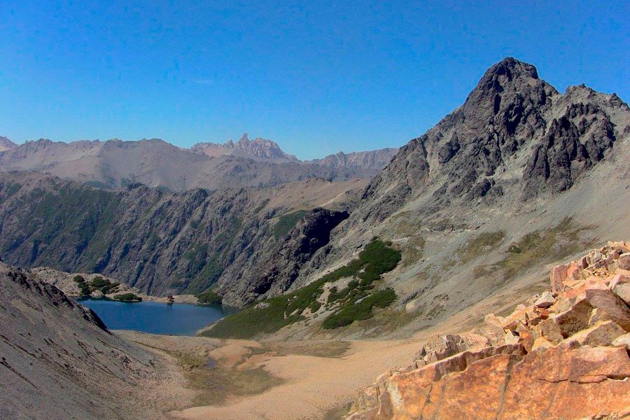 Luego de desayunar en el Refugio, la caminata comienza bordeando la Laguna Toncek, para luego ascender 250 mts de desnivel hasta la pequeña Laguna Schmol. Desde este punto se asciende al filo del Catedral pasando por “la canchita de futbol” (un pequeño plato). Una vez en el filo comienza el descenso hacia el Valle del Rucaco por un pedrero bastante suelto. El valle del Rucaco se atraviesa por un sendero que hacia el final comienza a subir 300 mts de desnivel, dejando atrás la vegetación y así alcanzar el filo del Cerro Brecha Negra. Desde este filo comienza el descenso bastante empinado hacia el Refugio Jakob. Pernocte y cena en el Refugio. Tiempo estimado: 6 /7 hs.